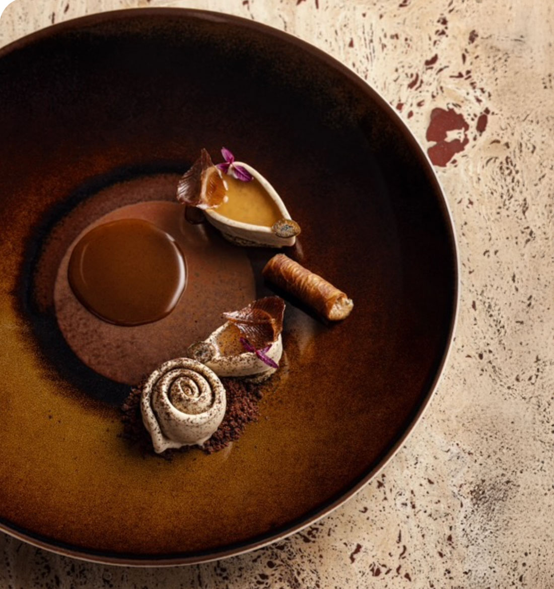 Originaire du sud de la France, Manon Gouin a grandi entre Marseille et les Baux-de-Provence, un territoire qui imprègne encore aujourd’hui son univers pâtissier. À seulement 25 ans, elle évolue depuis deux ans au sein du restaurant Mallory Gabsi, distingué d’une étoile au Guide Michelin. Un parcours déjà marqué par des reconnaissances majeures : le prix Lebey du meilleur dessert au chocolat 2024, suivi du prix Michelin x Valrhona Passion Dessert 2025.