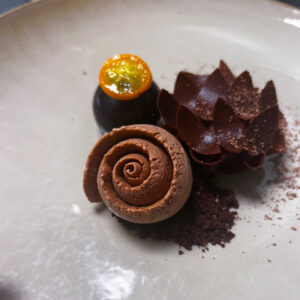 Mon intention était de créer un dessert en harmonie avec l’atmosphère feutrée et intemporelle du restaurant, comme s’il avait toujours appartenu au lieu.
